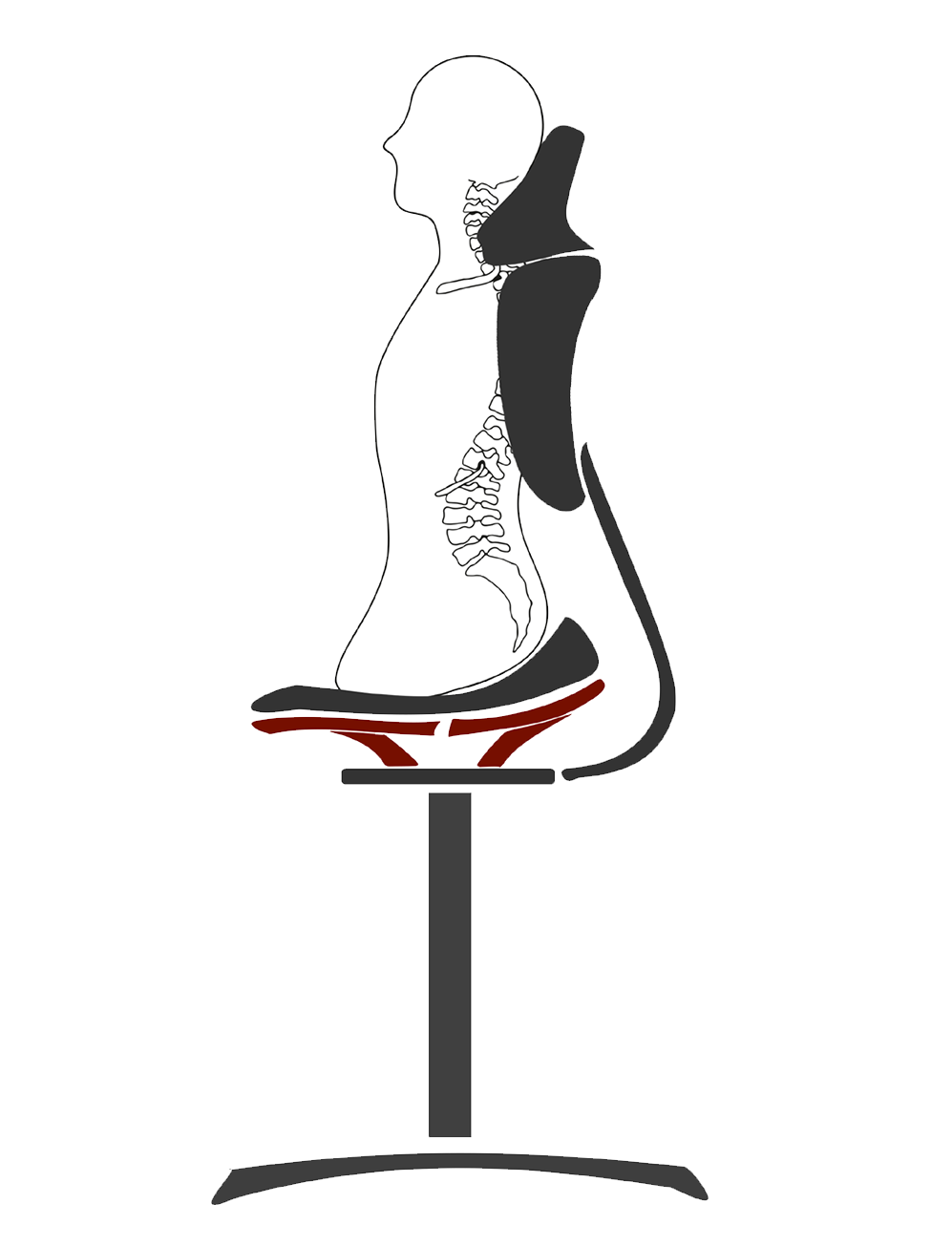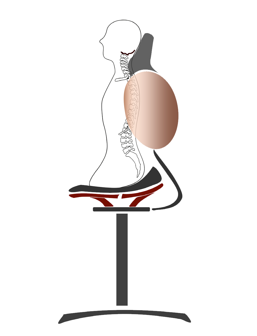 Diese Rückenlehne ist für den aufrechten Sitz, etwa auf lucky-loop-Oberflächen, konzipiert. Um den nach vorne gelagerten Schwerpunkt aufzufangen, kommt die Lehne dem Rücken entgegen und ist konvex geformt in Richtung Sitzfläche. Diese Biegung nach innen sorgt für eine aufrechte Haltung sowie ausreichende Belüftung der Lungen und Atemwege und beugt Verspannungen oder Migräne vor.